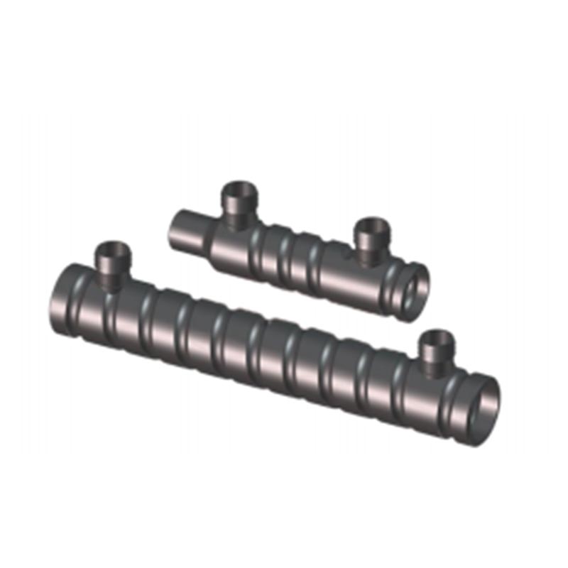 на обох кінцях, підходить для двонаправлених стикових з’єднань арматури; напівцементовані гільзи мають на одному різьбове з'єднання